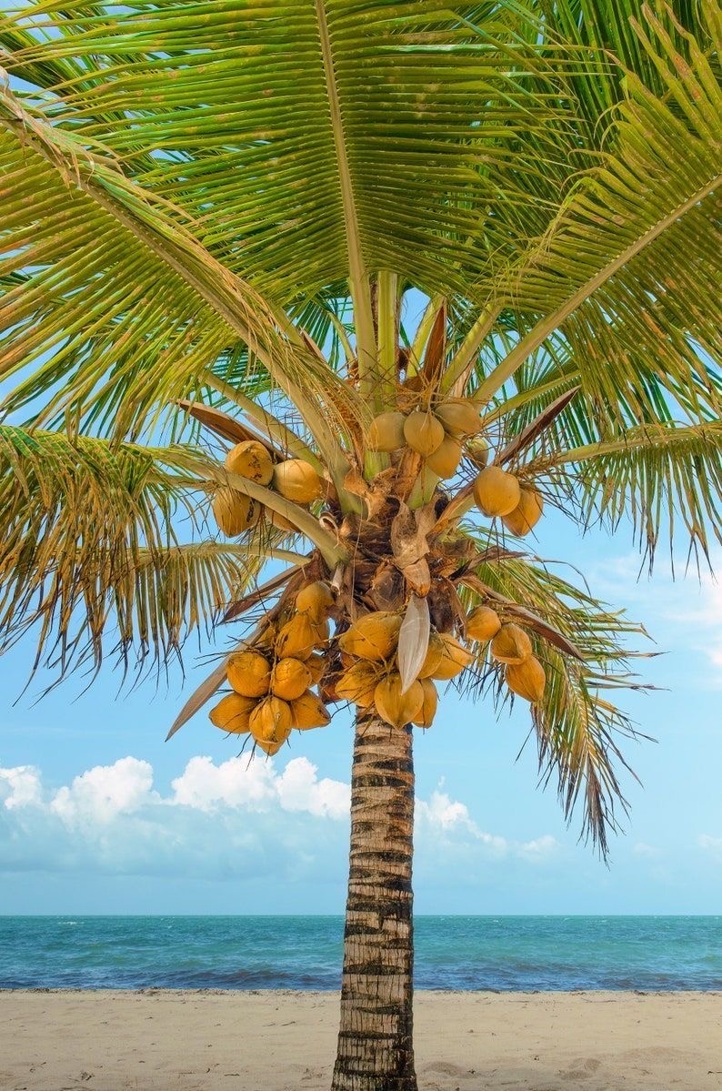 El árbol es cultivado desde hace siglos como planta ornamental, maderable y por su fruto, el coco, del cual se consumen su pulpa y jugo, y del que se fabrican jabones, aceites y otros productos una palmera que crece hasta 30 metros de altura con tronco de color gris a marrón , las hojas de color verde amarillento pinnadas de 4 a 6 metros de largo, raíces fibrosas, largas, delgadas y fasciculadas , esta planta puede encontrarse en la orilla de playas tropicales arenosas del mar Caribe.